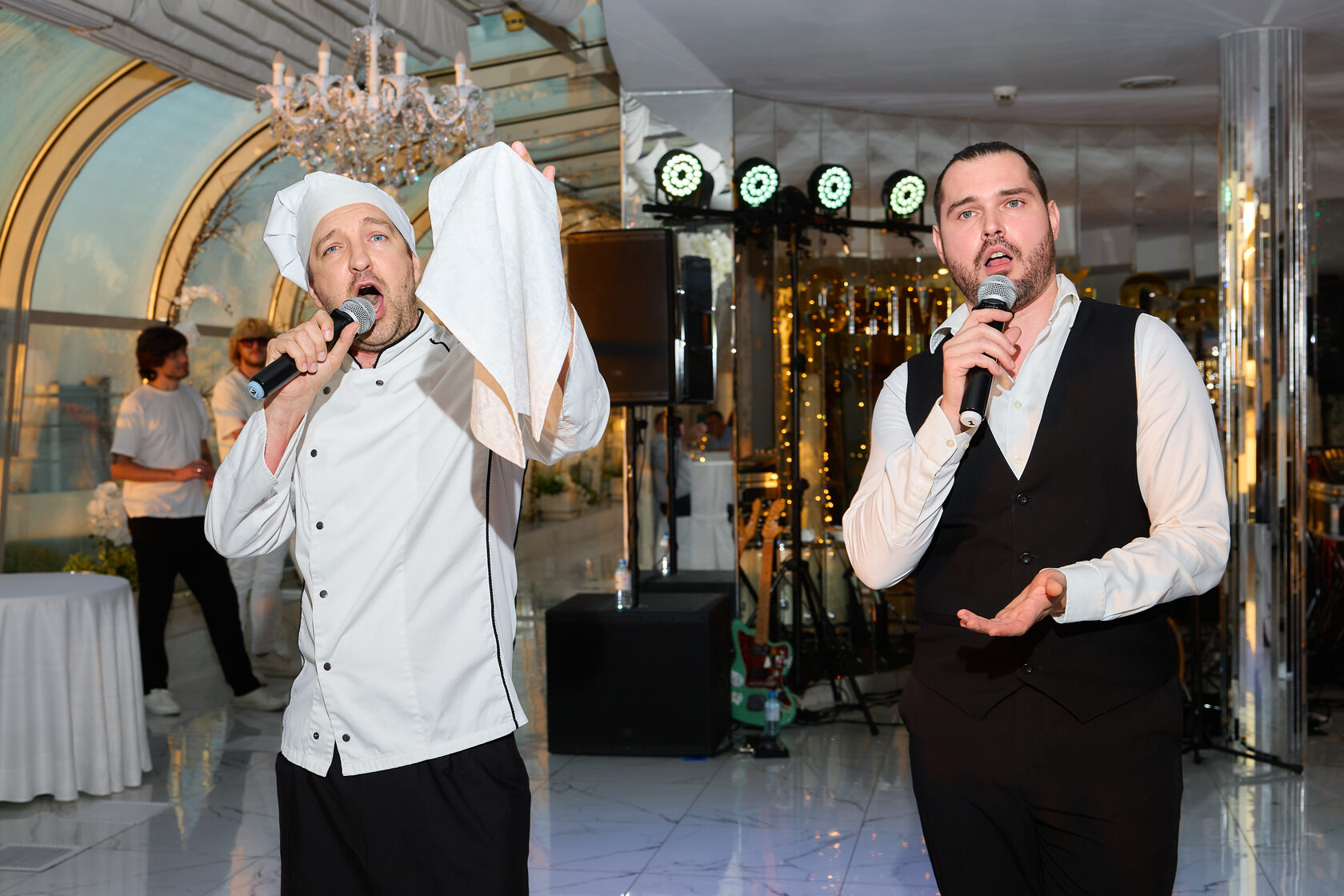 В этот раз выступил две звезды московской мюзикл-сцены! Представьте: ваши официанты вдруг оказываются профессиональными артистами с фантастическими голосами и сценическим обаянием. Именно это и произошло – под аплодисменты и восторженные взгляды гостей.
